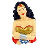 Selected to be the Amazon's ambassador to the outside world, Wonder Woman carries a message of peace, justice, and democracy to all humanity - and she has the power to back up her beliefs! Monogram Masterworks has proudly made this trendy bust bank. Measuring 3' x 8' x 8', you can place this bust bank anywhere: desk, book shelves, and more! Made of roto plastic. Read more